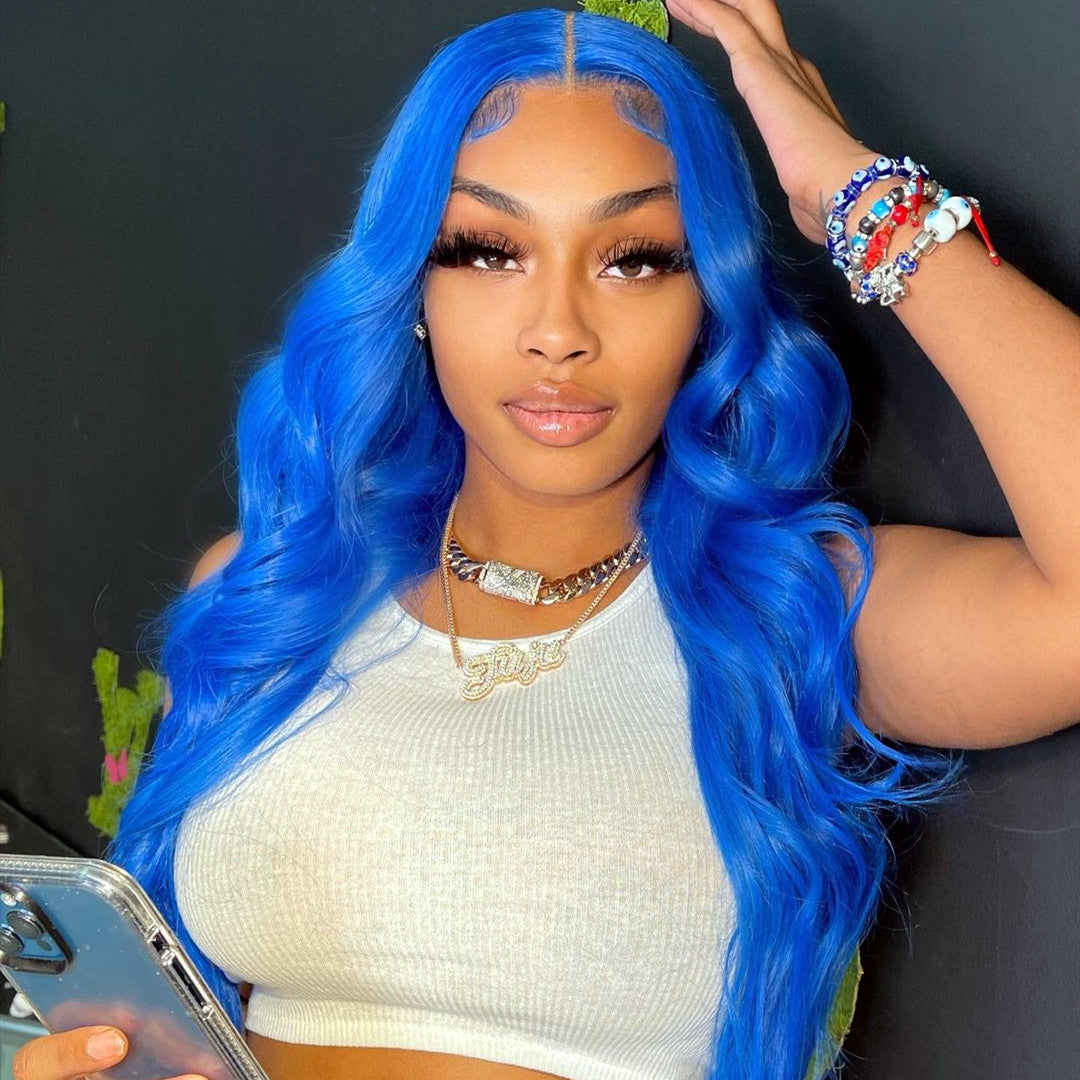 Real Human Hair Lace Front Wigs Royal Blue Natural Wave Style